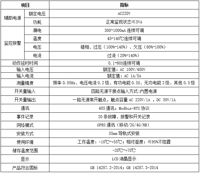 產(chǎn)品簡(jiǎn)介:智慧用電在線監(jiān)控裝置是針對(duì)0.4kV以下的TT、TN系統(tǒng)設(shè)計(jì)的智能電力裝置,具有單、三相交流電測(cè)量、四象限電能計(jì)量、諧波分析、遙信輸入、遙信輸出功能,以及RS485通訊或GPRS無(wú)線通訊功能,通過(guò)對(duì)配電回路的剩余電流、導(dǎo)線溫度等火災(zāi)危險(xiǎn)參數(shù)實(shí)施監(jiān)控和管理。
