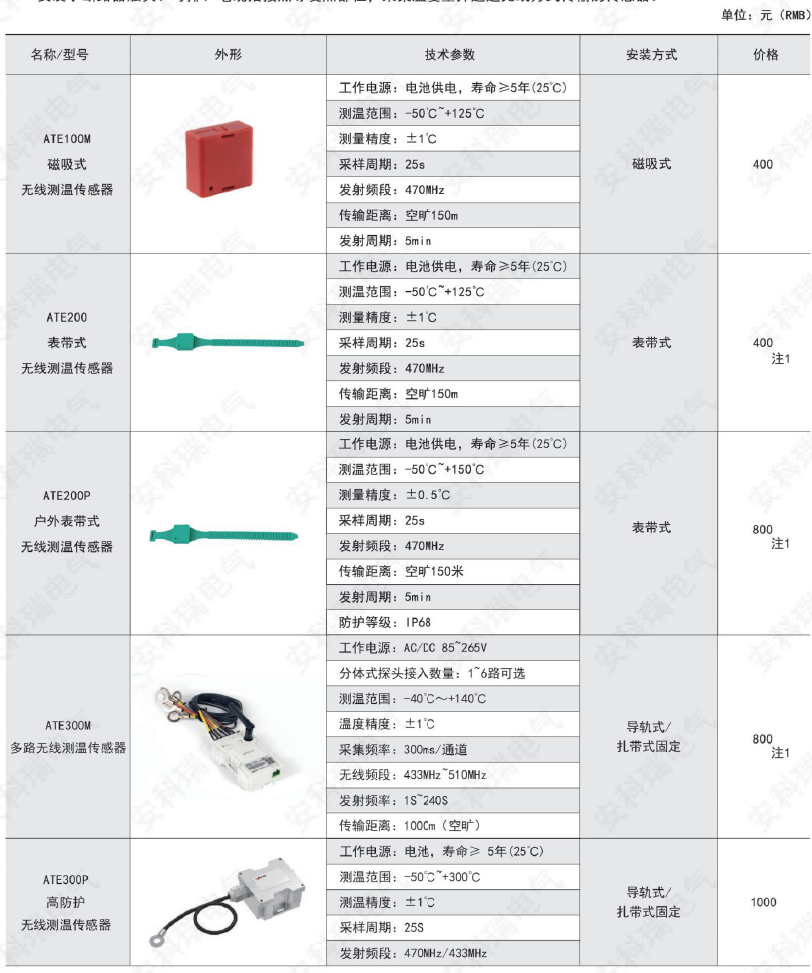 綜上所述,確定型號為:無線測溫裝置:ARTM-P9-300,1臺;無線測溫傳感器:ATE300,9個