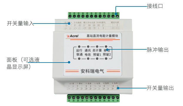 AMC16-DETT 基站直流電能計(jì)量模塊主要是針對有共享需求,且開關(guān)電源無分用戶電量計(jì)量功能的基站而設(shè)計(jì)的。儀表可對六個回路的直流電能進(jìn)行計(jì)量,并可為配套的霍爾傳感器提供工作電流,同時可通過上位機(jī)軟件實(shí)現(xiàn)零漂校準(zhǔn),具有遙測、遙 信、遙調(diào)、實(shí)時電量計(jì)量、供電質(zhì)量異常告警、信息存儲及處理、信息交互等功能。該模塊可分別計(jì)量三家運(yùn)營商的直流用電量,為基站節(jié)能改善提供詳細(xì)的數(shù)據(jù)依據(jù),為直流配電設(shè)備提供分項(xiàng)計(jì)量解決方案。