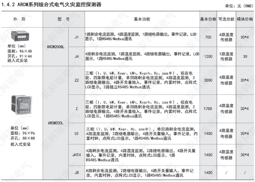 ARCM系列組合式電氣火災監(jiān)控探測器