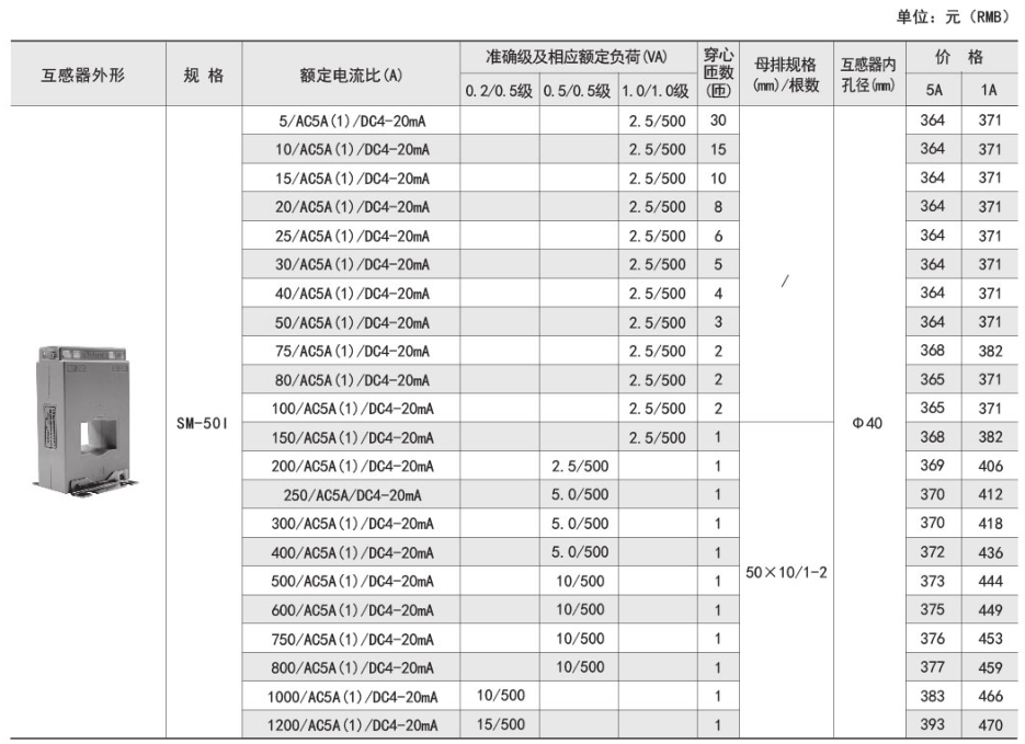技術(shù)要求:額定電流比500A/5A/20mA;準(zhǔn)確級(jí)0.5/0.2級(jí);穿心匝數(shù)1匝;內(nèi)孔徑φ40mm。
