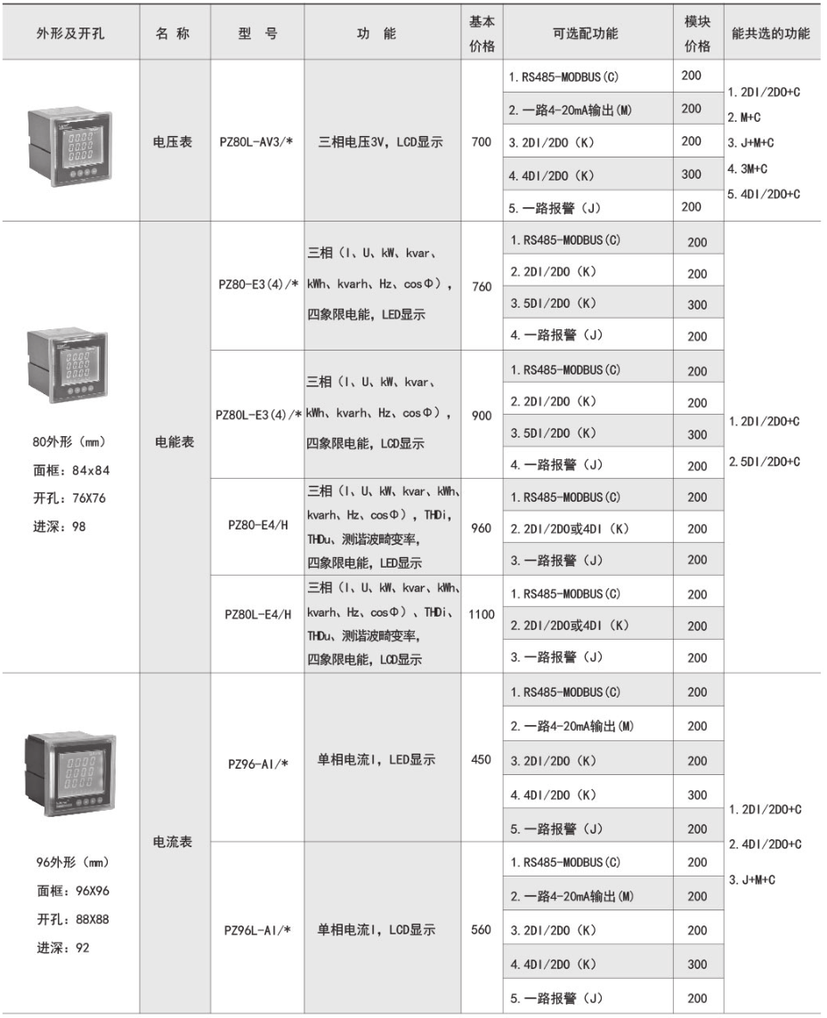 該系列儀表采用交流采樣技術(shù),能分別測量電網(wǎng)中的電流、電壓、功率、功率因數(shù)和電能等參數(shù)??蓭S485通訊接口、模擬量數(shù)據(jù)轉(zhuǎn)換、開關(guān)量輸入/輸出等功能,實現(xiàn)電力參數(shù)、電氣元件工作狀態(tài)的遠(yuǎn)程傳輸,便于后臺監(jiān)控系統(tǒng)集中檢測。