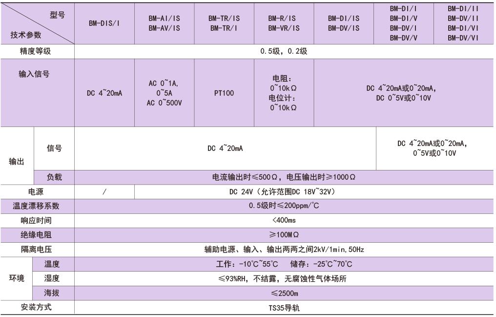 BM系列模擬信號隔離器可以對電流、電壓等電量參數(shù)或溫度、電阻等非電量參數(shù)進行高速精確測量,經(jīng)隔離轉(zhuǎn)換成標準的模擬信號輸出。既可直接與指針表、數(shù)顯表相接,也可以與自控儀表(如PLC)、各種A/D轉(zhuǎn)換器以及計算機系統(tǒng)配接。
