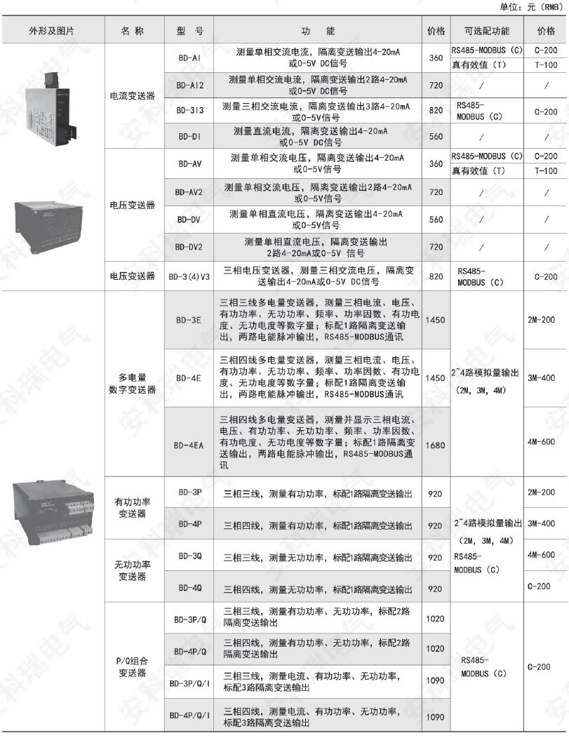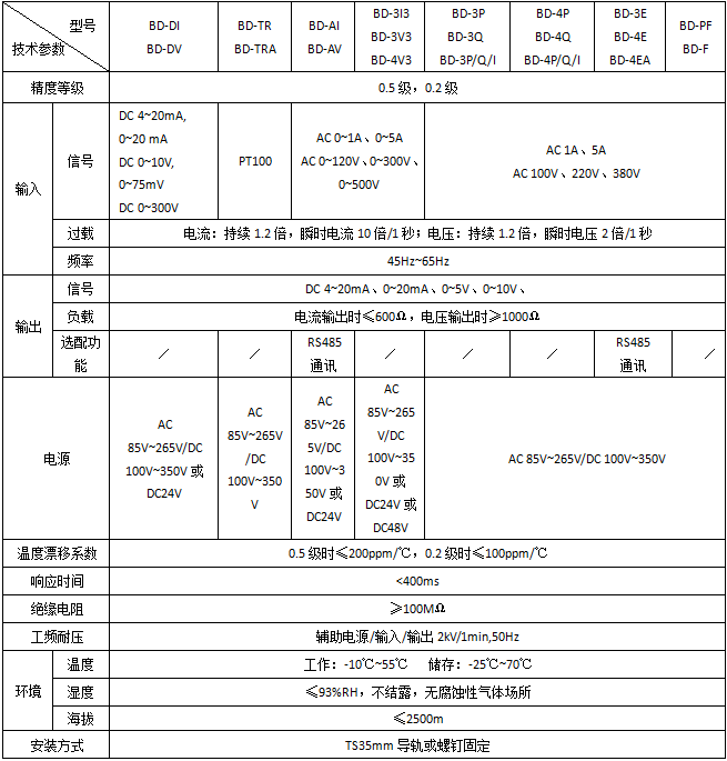 產(chǎn)品簡介:BD系列電力變送器是一種將電網(wǎng)中的電流、電壓、頻率、功率、功率因數(shù)等電參量,經(jīng)隔離變送成線性的直流模擬信號或數(shù)字信號的裝置。