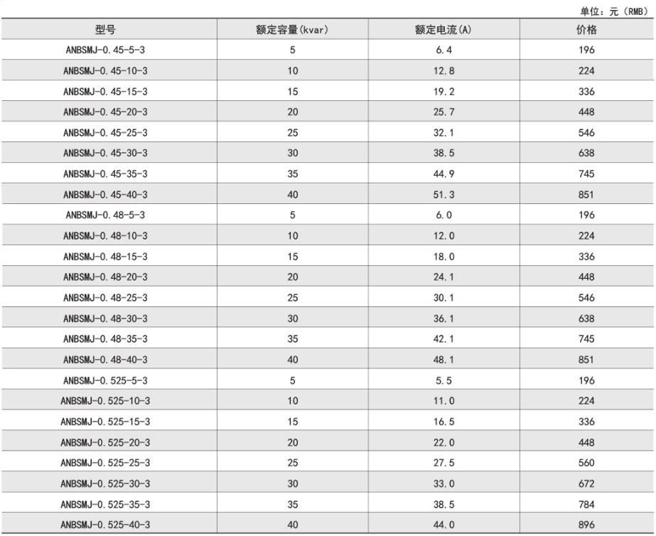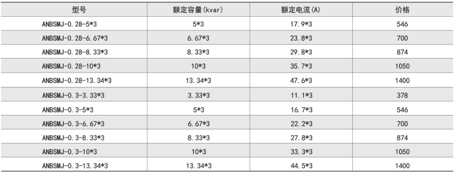 2)額定電壓:三相 450V、480V、525V;分補 250V、280V、300V。