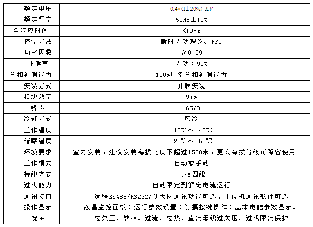 技術(shù)參數(shù):無功補(bǔ)償容量250kvar,諧波補(bǔ)償電流125A