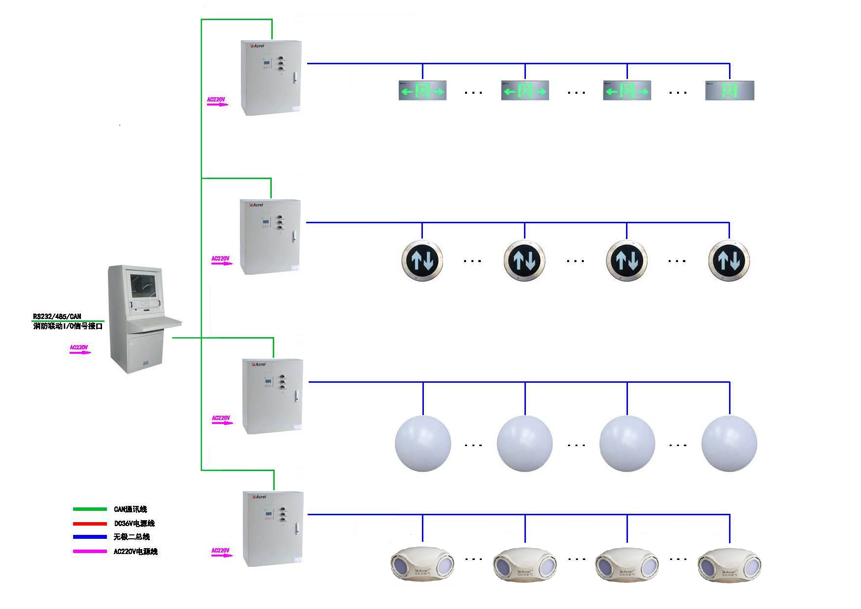 阿克蘇數(shù)據(jù)機房項目的消防應(yīng)急照明和疏散指示系統(tǒng)是安科瑞研發(fā)的集監(jiān)視、報警、管理于一體的計算機測控系統(tǒng),該系統(tǒng)可以通過控制器接收火災(zāi)報警系統(tǒng)的信號,當(dāng)火災(zāi)發(fā)生的時候,消防應(yīng)急照明和疏散指示系統(tǒng)具有智能動態(tài)導(dǎo)光功能,系統(tǒng)根據(jù)火災(zāi)報警聯(lián)動信號及災(zāi)情現(xiàn)場的具體情況通過計算機選擇一條正確逃生路,再通過改變標(biāo)志燈的箭頭方向為逃生人員提供更有效的疏散逃生路。當(dāng)發(fā)生緊急斷電或電源供電不足時,應(yīng)急照明集中電源能夠給燈具供電,保證整個系統(tǒng)的正常工作。該系統(tǒng)由控制器、集中電源、消防應(yīng)急標(biāo)志燈具和消防應(yīng)急照明燈具等組成,系統(tǒng)結(jié)構(gòu)合理、功能強大、可靠性高、維護(hù)方便。