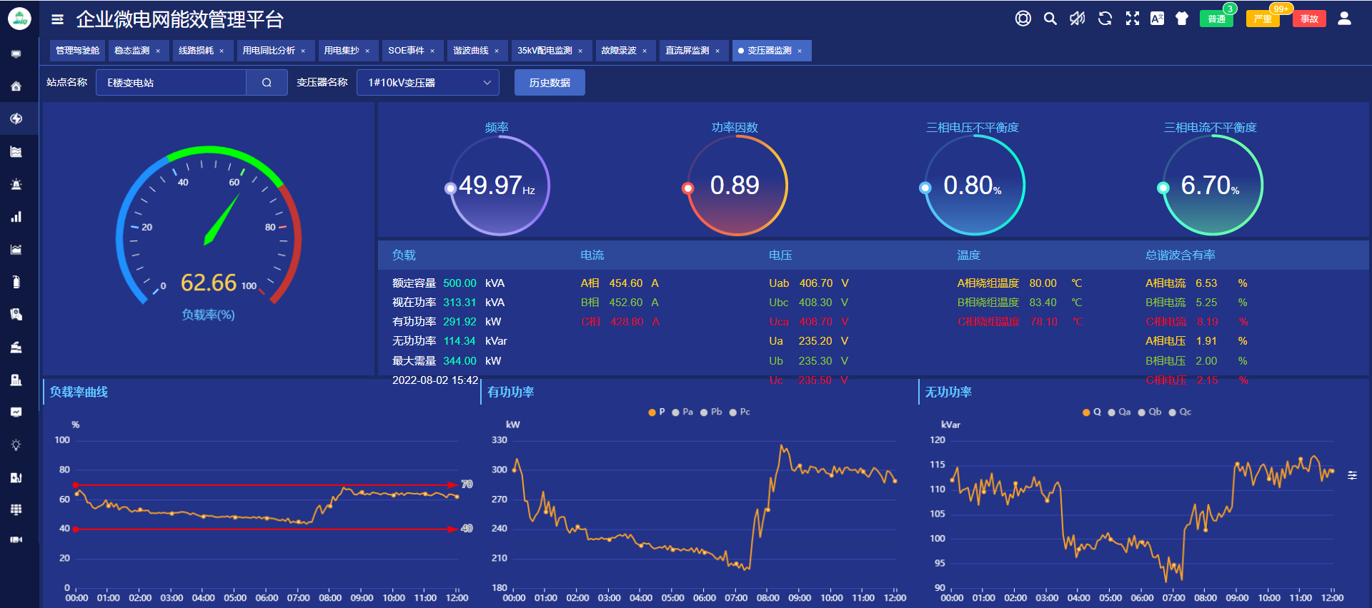 本項(xiàng)目共計(jì)5臺(tái)變壓器,10臺(tái)高壓柜,共有72個(gè)出線回路。安科瑞為該項(xiàng)目提供Acrel EMS企業(yè)微電網(wǎng)系統(tǒng),包含一套Acrel EMS電力監(jiān)控軟件,72臺(tái)AEM96/CFK多功能儀表以及6臺(tái)AM5系列綜保。
