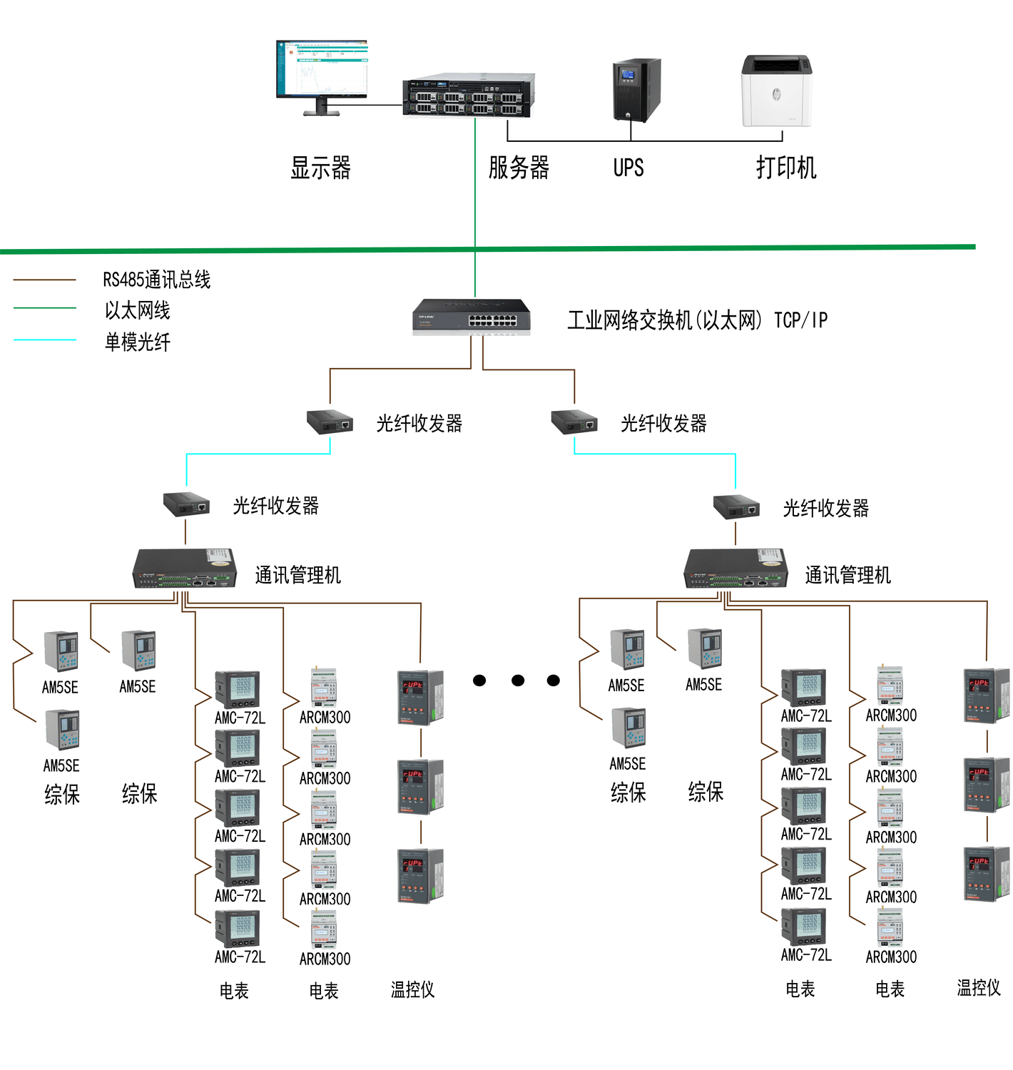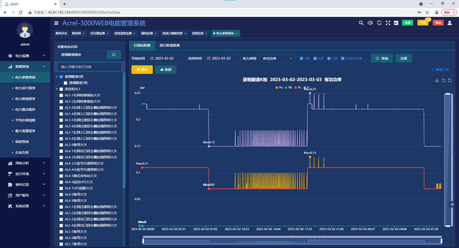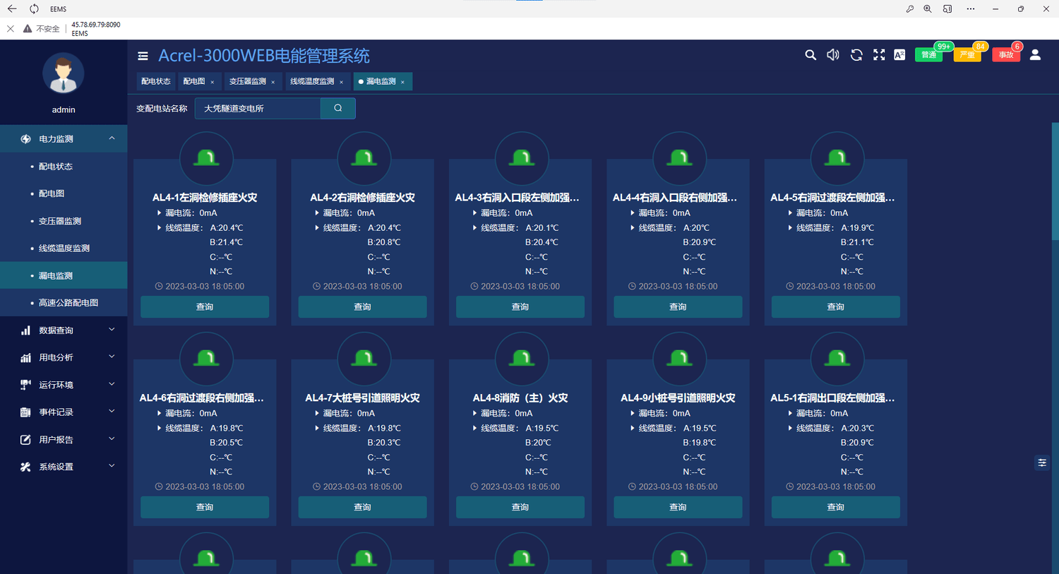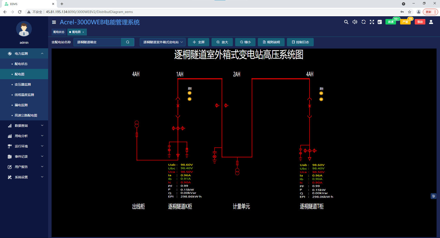 大憑高速共64個(gè)變電所其中隧道配電房有44個(gè),收費(fèi)站服務(wù)區(qū)配電房有20個(gè),每個(gè)配電房均配置有電氣火災(zāi)探測器,高壓綜保,低壓多功能表,無功補(bǔ)償監(jiān)控裝置,溫控儀,UPS,EPS,柴發(fā)等設(shè)備??傆?jì)點(diǎn)位5300個(gè)左右。