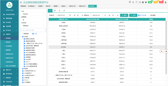 平臺具備定時抄表匯總統(tǒng)計功能,用戶可以自由查詢平臺正常運行以來任意時間段內(nèi)各配電節(jié)點的用電情況。