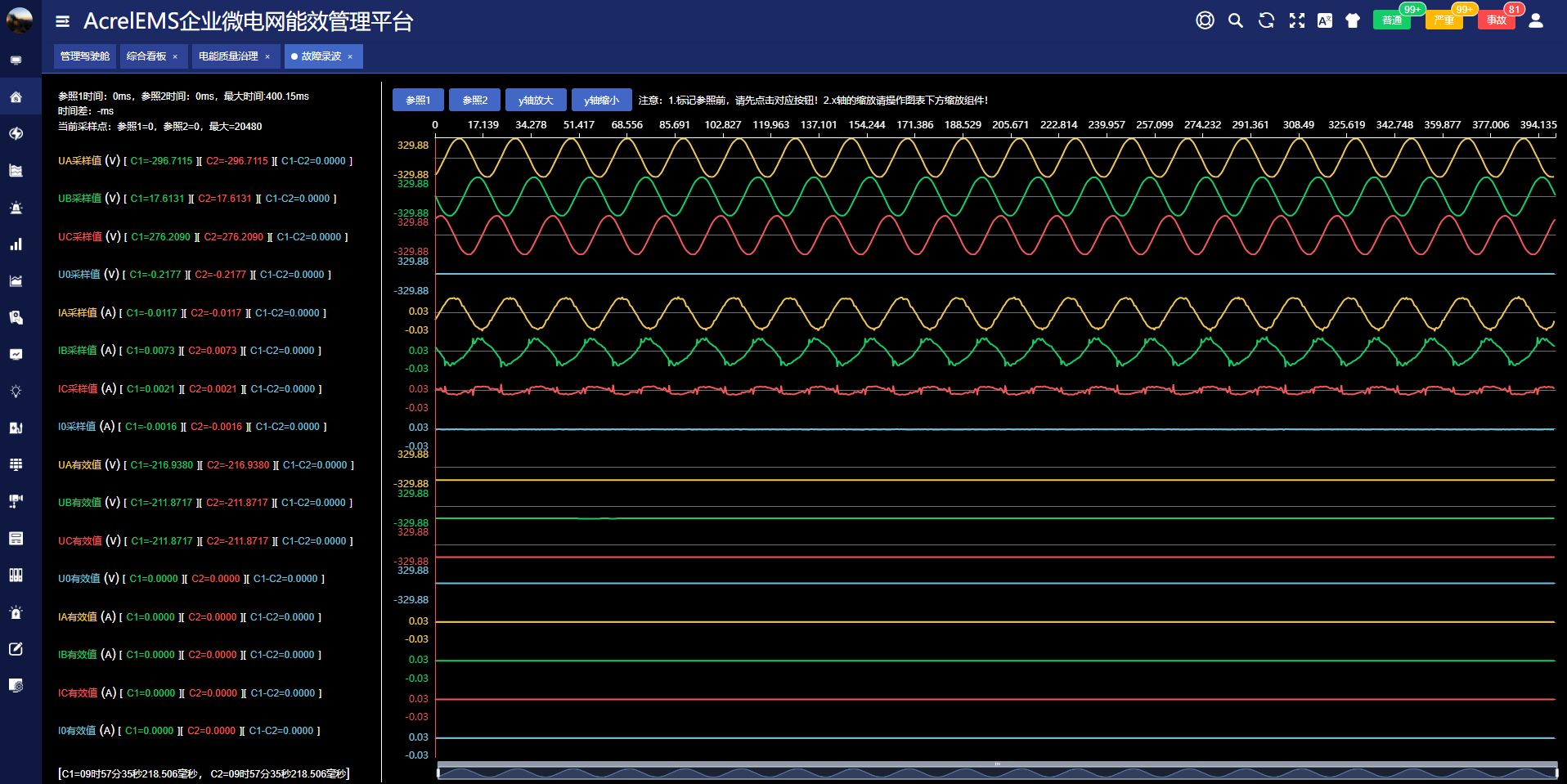 平臺可實時監(jiān)測配電系統(tǒng)的諧波畸變、電壓波動、閃變和容忍度指標分析配電系統(tǒng)的電能質(zhì)量。
