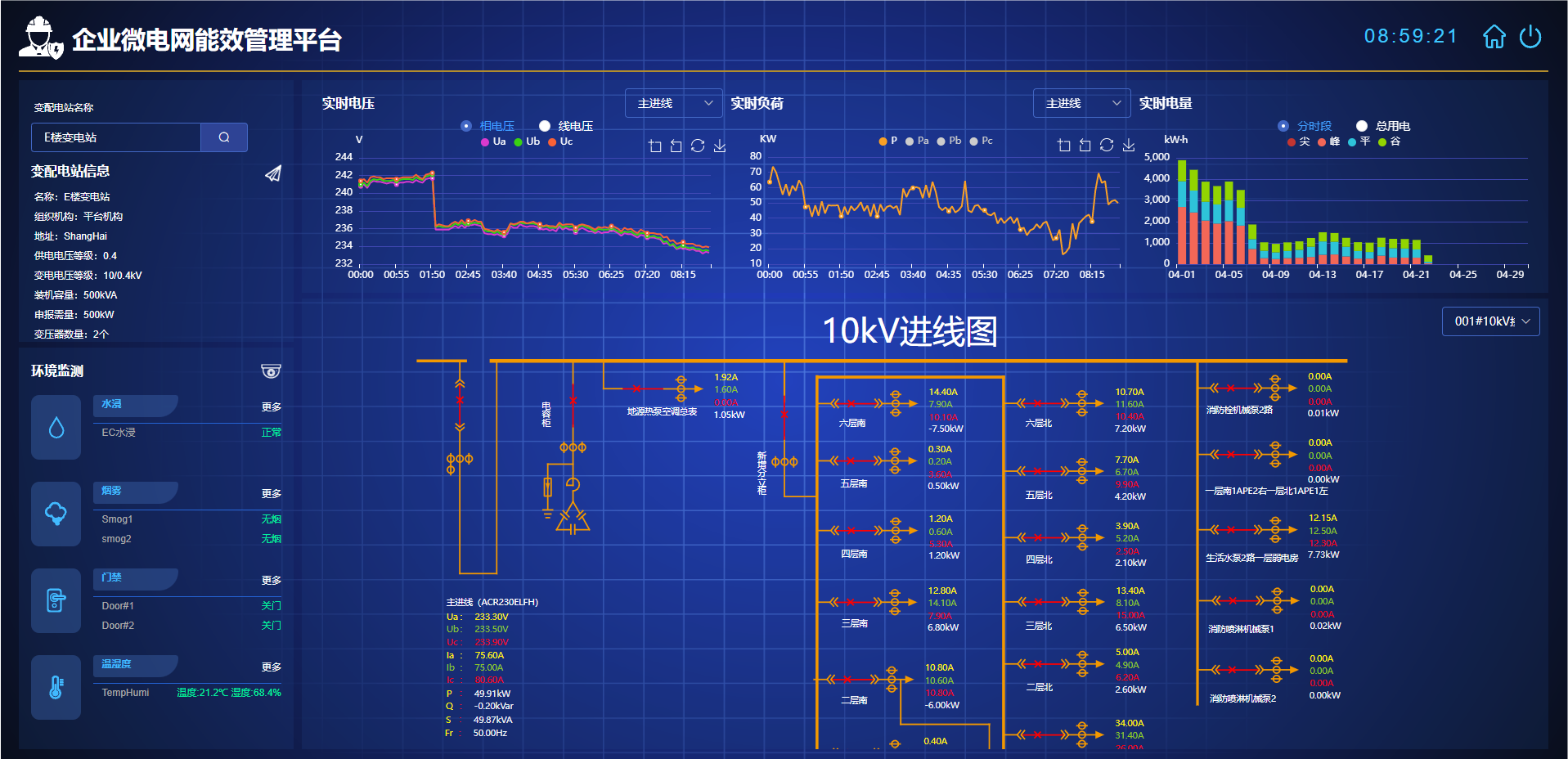 平臺可實時監(jiān)測變電所內(nèi)變壓器、各配電回路的運行情況,并記錄各電力參數(shù)的歷史數(shù)據(jù)。