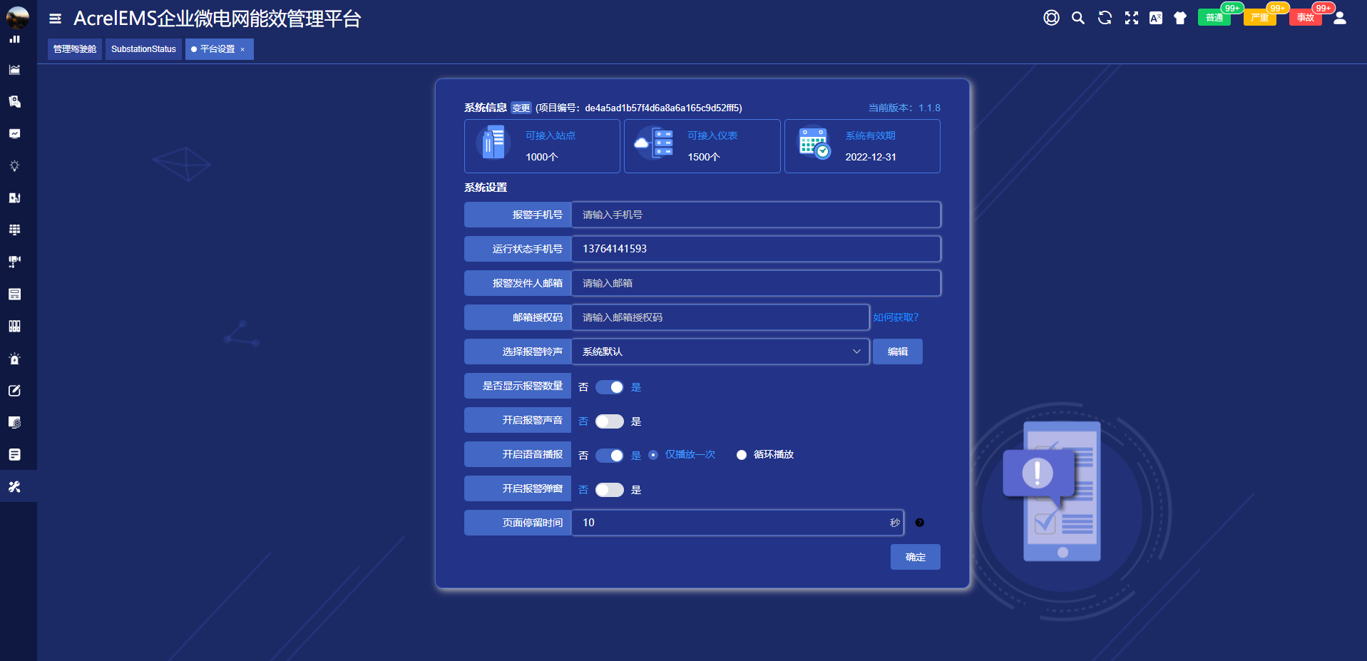 平臺接收到報警信息后,可通過短信或者APP推送報警信息,相關(guān)報警閾值可根據(jù)要求靈活設(shè)置,并對報警設(shè)置不同級別。