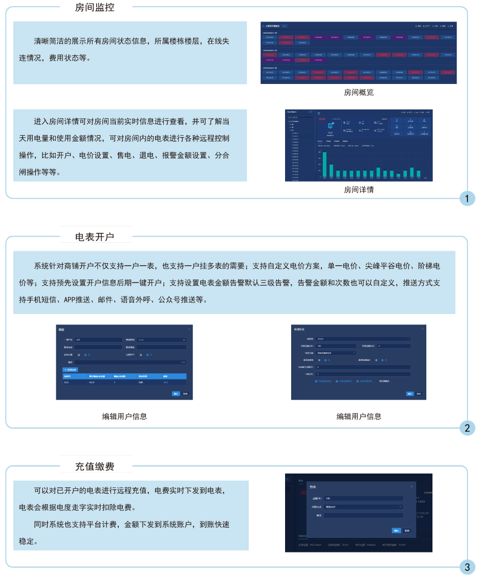 主要完成電能表/水表參數(shù)設(shè)置,商戶售電/售水管理及能耗管理工作,操作簡便,實(shí)現(xiàn)物業(yè)公司遠(yuǎn)程實(shí)時(shí)操作實(shí)時(shí)監(jiān)控,具有良好的人機(jī)界面,能夠有效的統(tǒng)計(jì)和管理數(shù)據(jù)。安裝方便,是用電管理部門、商業(yè)廣場和物業(yè)小區(qū),提高用電用水管理水平,解決收費(fèi)難問題的理想產(chǎn)品。